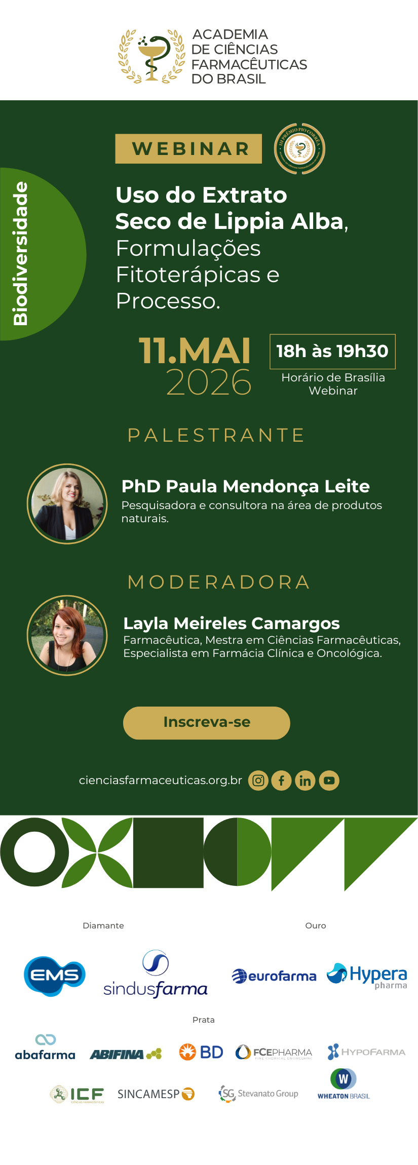Palestrante: PhD Paula Mendonça Leite, pesquisadora e consultora na área de produtos naturais.
